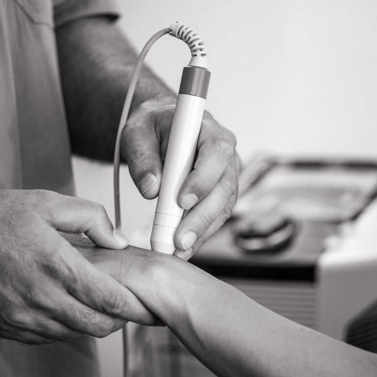 Mit dieser Therapie können wir Ihnen helfen, Beschwerden im Bereich der Sehnen, wie zum Beispiel Tennisarm oder Achillessehnenprobleme, zu lindern. Auch bei Schleimbeutel Reizungen oder Fersensporn kann diese Therapie eingesetzt werden. Wir verwenden einen speziellen Applikator, um mit dieser Therapie auch gezielt Triggerpunkte und Verspannungen in der Muskulatur aufzulösen.